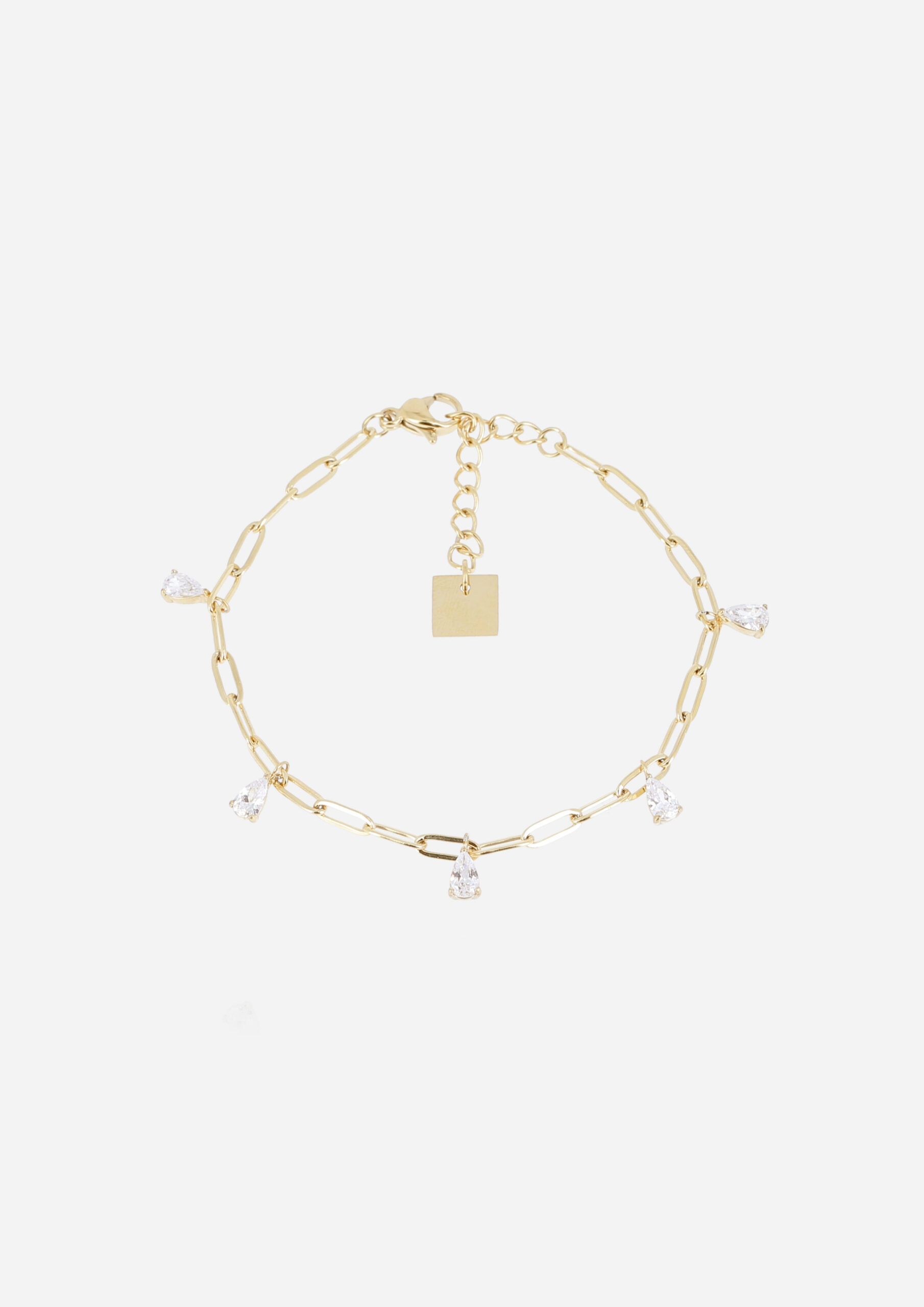 GOLD-PLATED STEEL LINK BRACELET with set zirconiums, 15+3cm