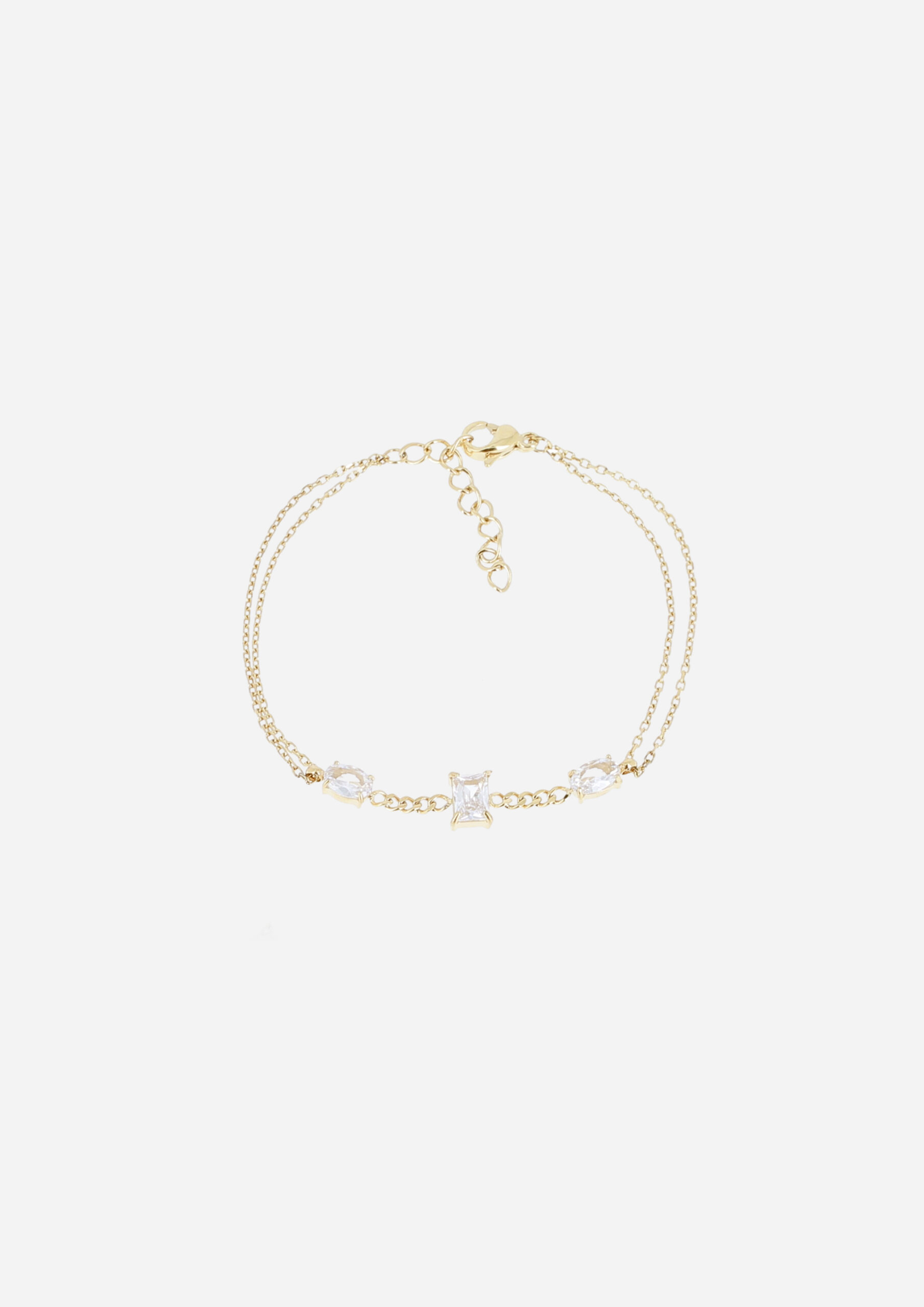 GOLD-PLATED STEEL LINK BRACELET with set zirconiums, 15+3cm