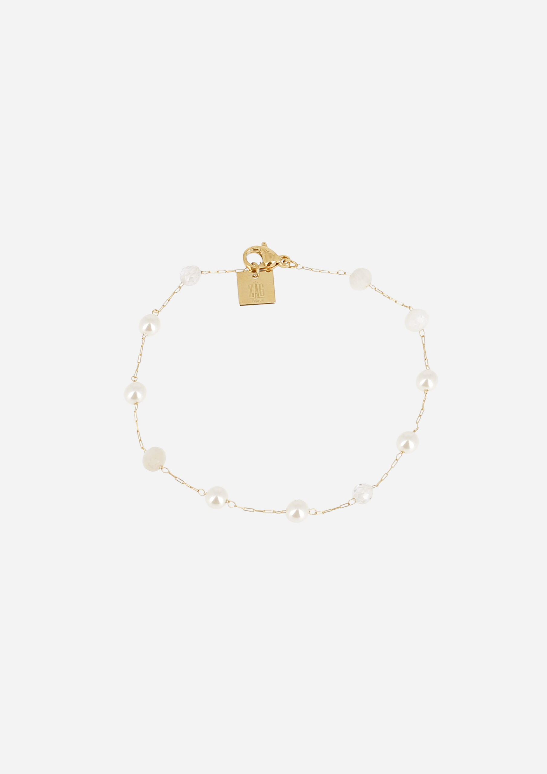 Bracelet–SIMPLE–GOLD PLATED STEEL–moonstone–zirconium–mother-of-pearl–15+3cm