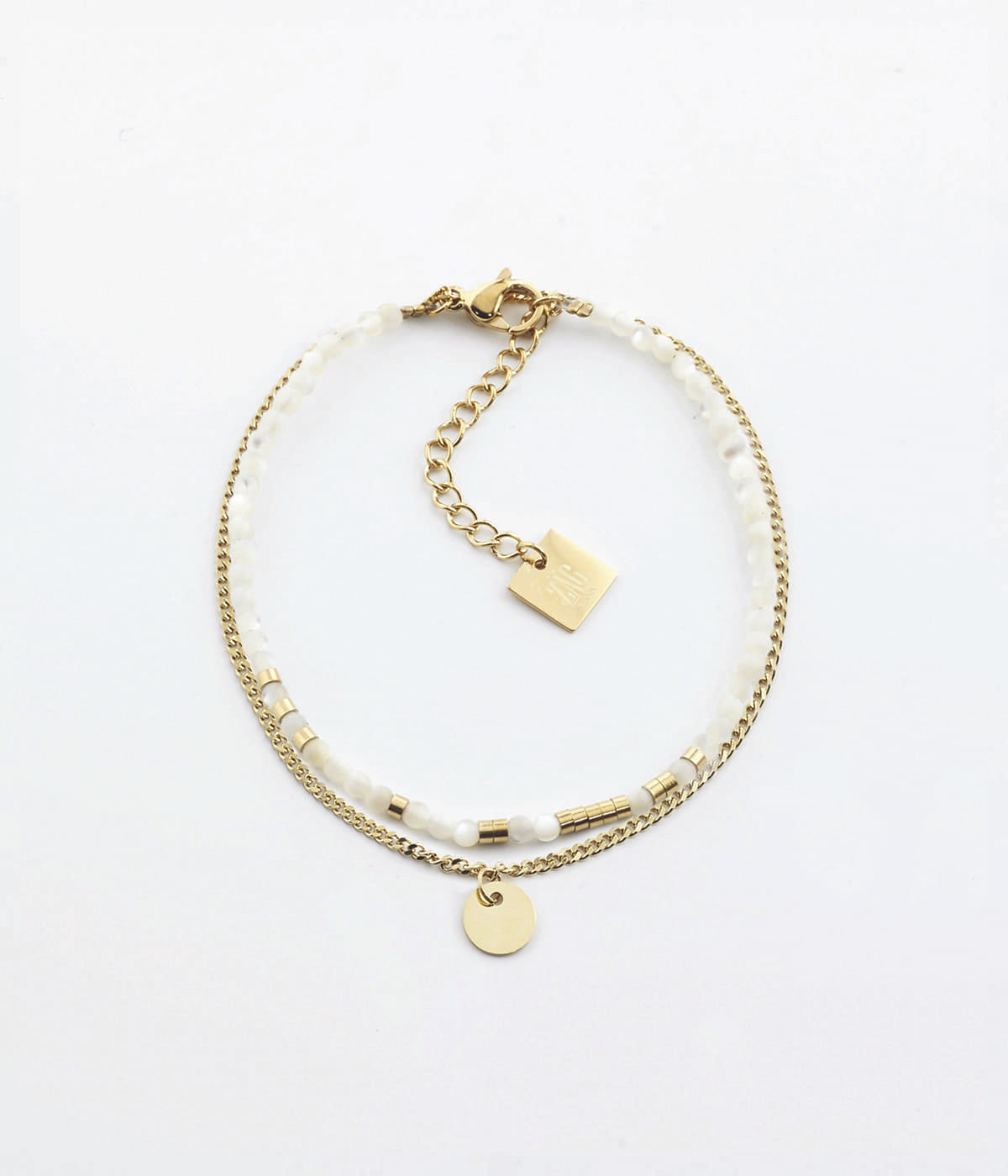 Apache bracelet, gold-plated steel with white mother-of-pearl, 15+3cm