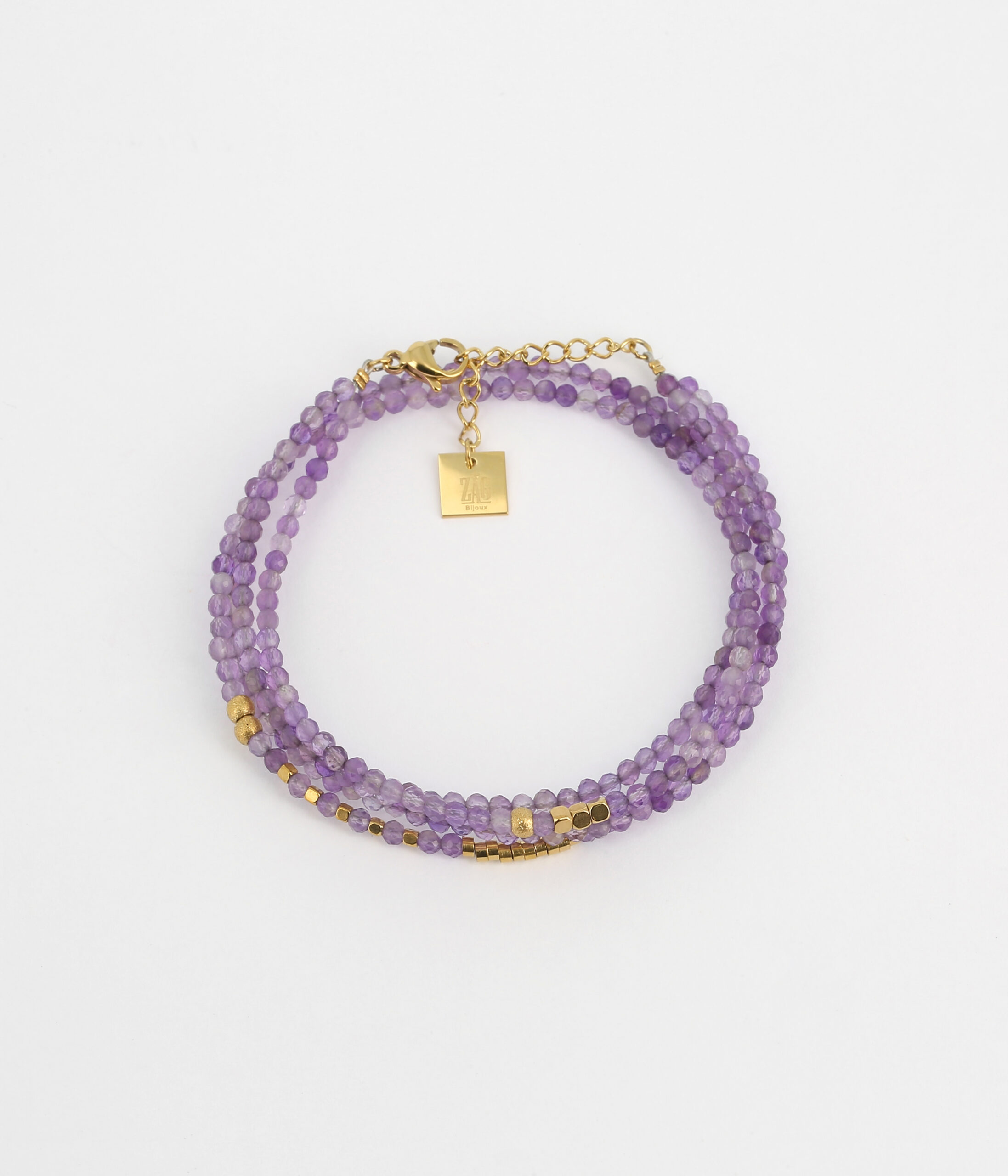Bracelet–Favela–GOLD PLATED STEEL–amethyst–2 adjustable turns