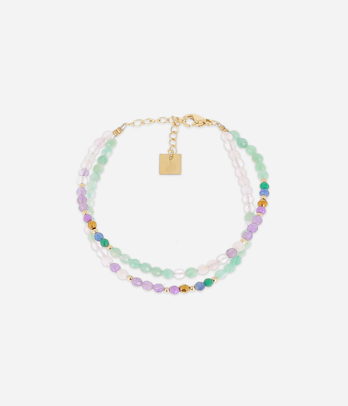 Bracelet–Tutti Frutti–GOLD PLATED STEEL–mixed stones–15+3cm