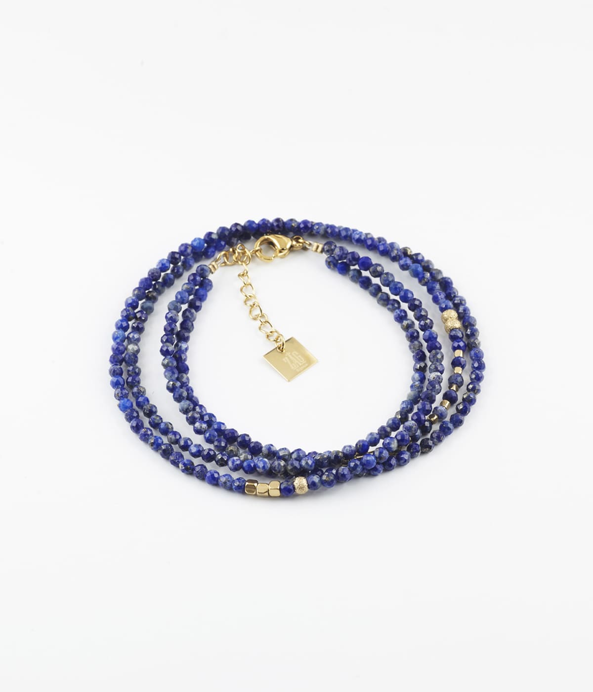 Bracelet–Favela–GOLD PLATED STEEL–lapis–2 adjustable turns