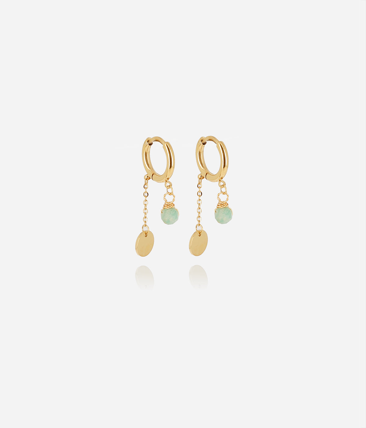 EarRings–Josephine–GOLD PLATED STEEL–amazonite–d10mm