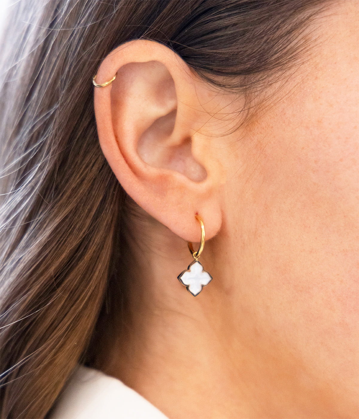 Root earring, gold-plated steel, mother-of-pearl