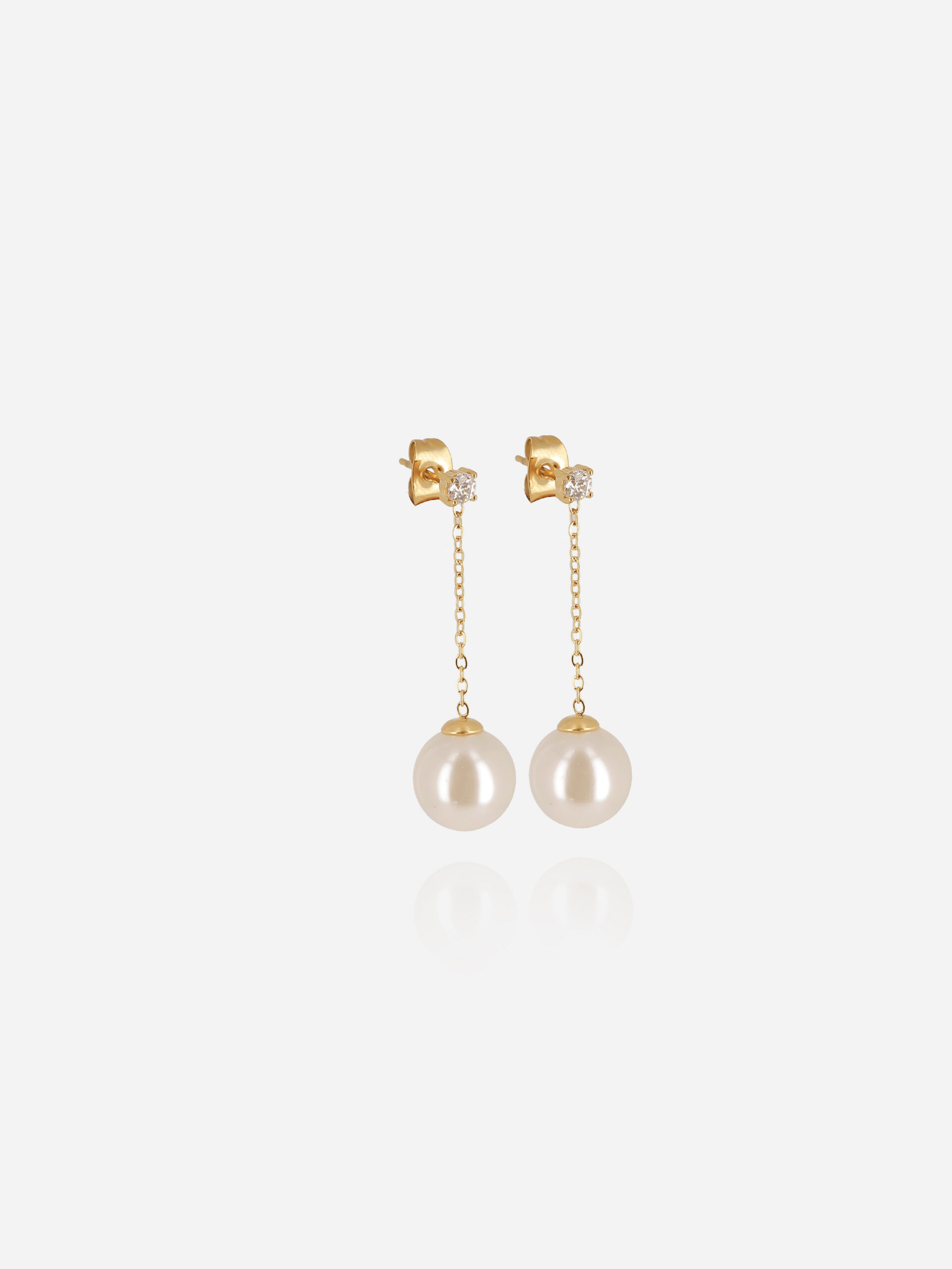 EarRings–LONG–GOLD PLATED STEEL–nacre pearl–L:3.5cm d:10mm