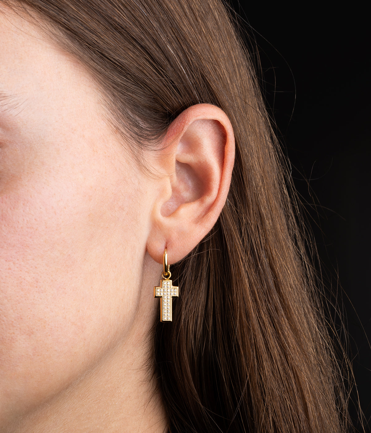 Ondine EARRING GOLD PLATED STEEL set with zirconium stones L:2.8cm d: 10x16mm