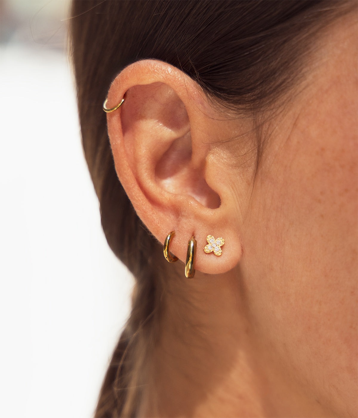 Amae Gold Plated Steel Earring with Zirconium Stones 6.5×6.5mm