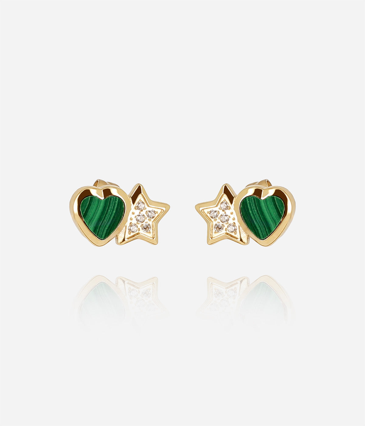Earrings–Sassari–gold–zirconium+malachite