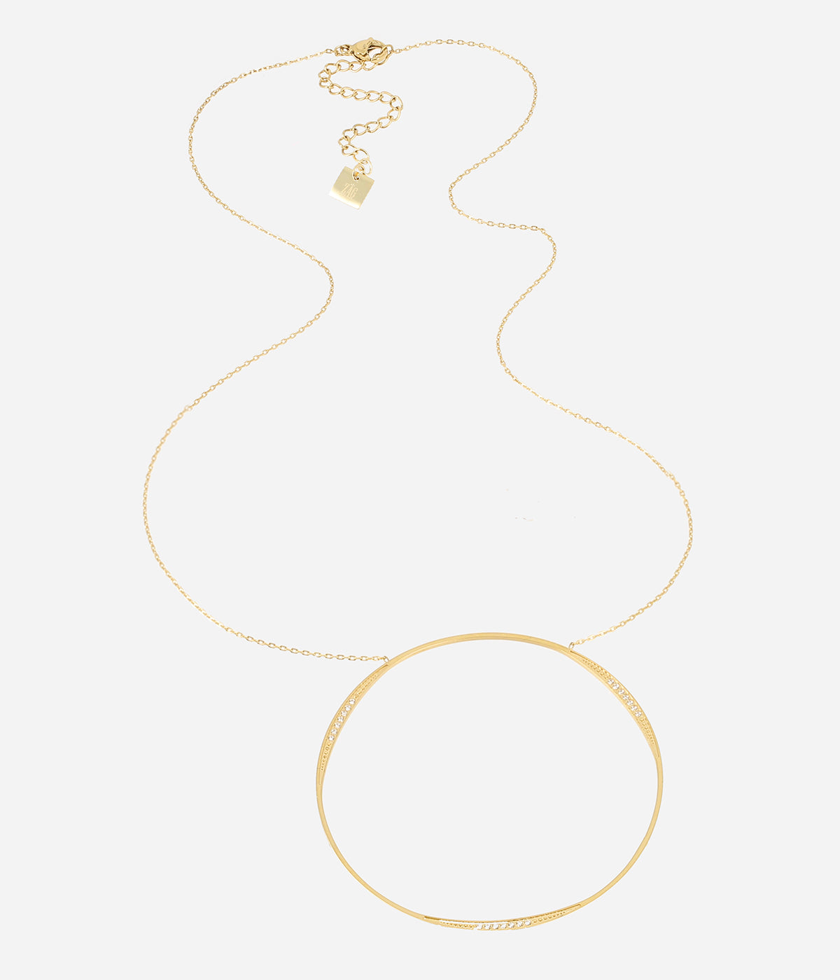 Necklace – Circle – gold – zirconium – 45+5cm, 60mm wide