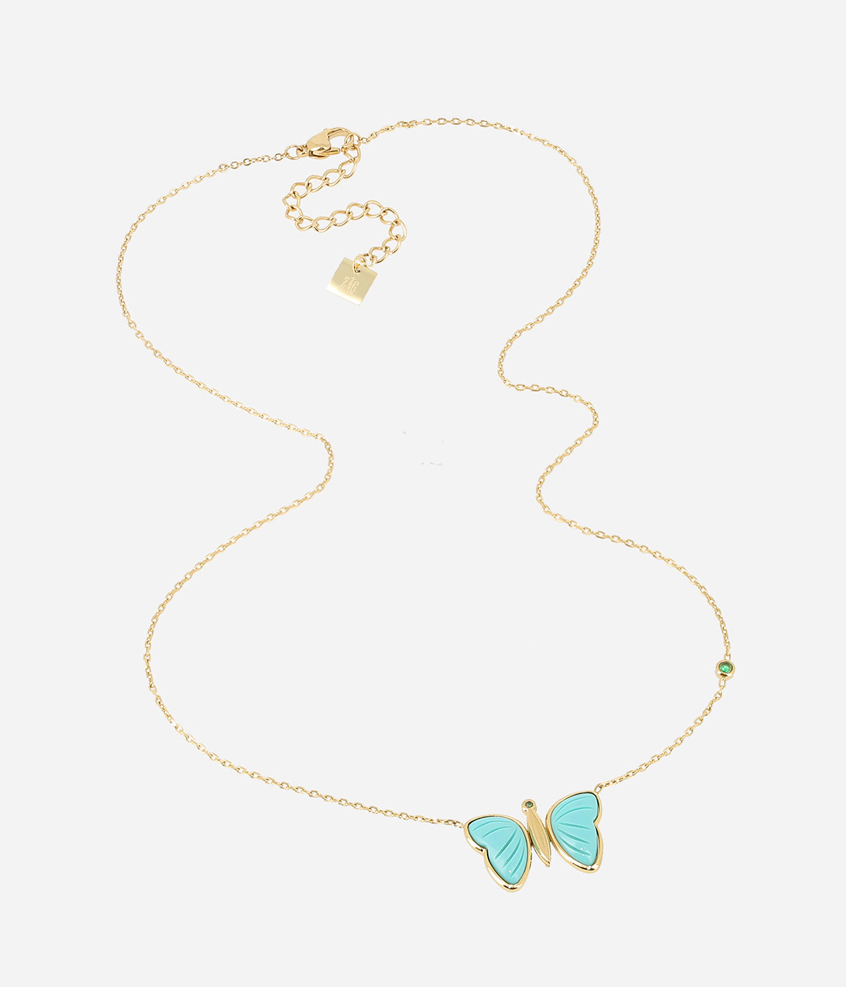 Necklace – Farfalla – gold – turquoise – 42+5cm, 21.5mm thick