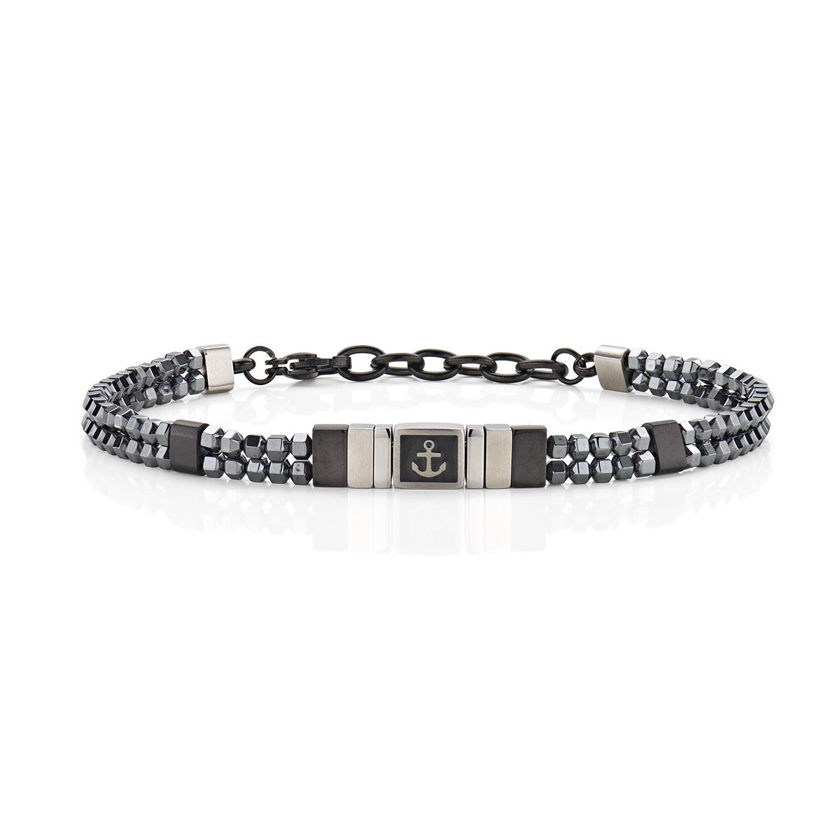 Stainless steel bracelet with hematite and black enamel – Burnished – Length 19 + 3 cm