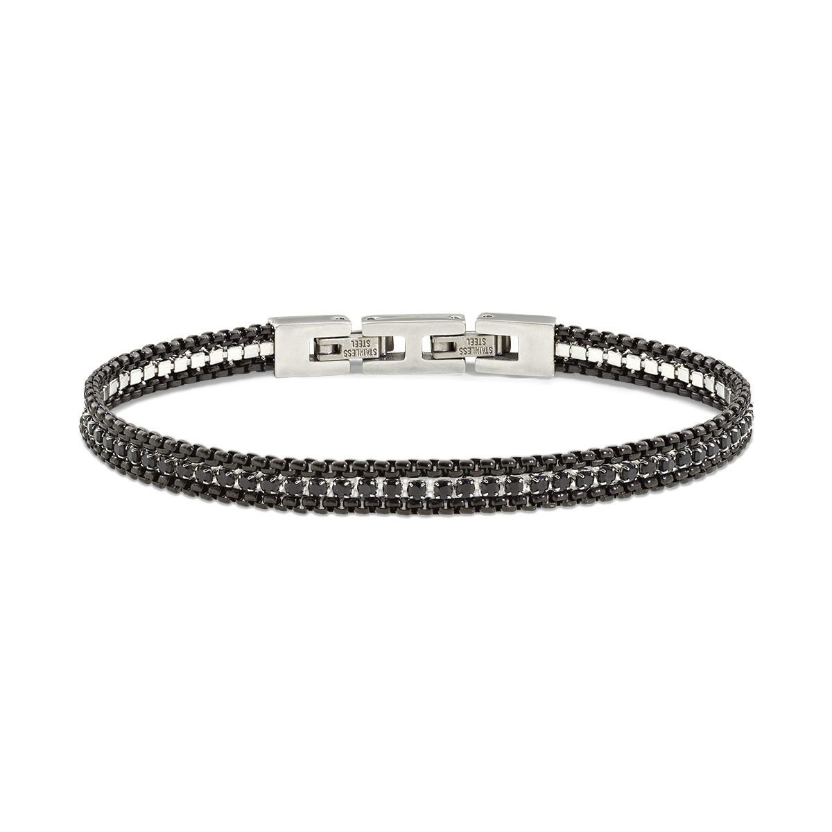 Stainless steel bracelet with black zirconia – Black PVD – length 19 + 1 + 1 cm – Ø 2 mm zirconia