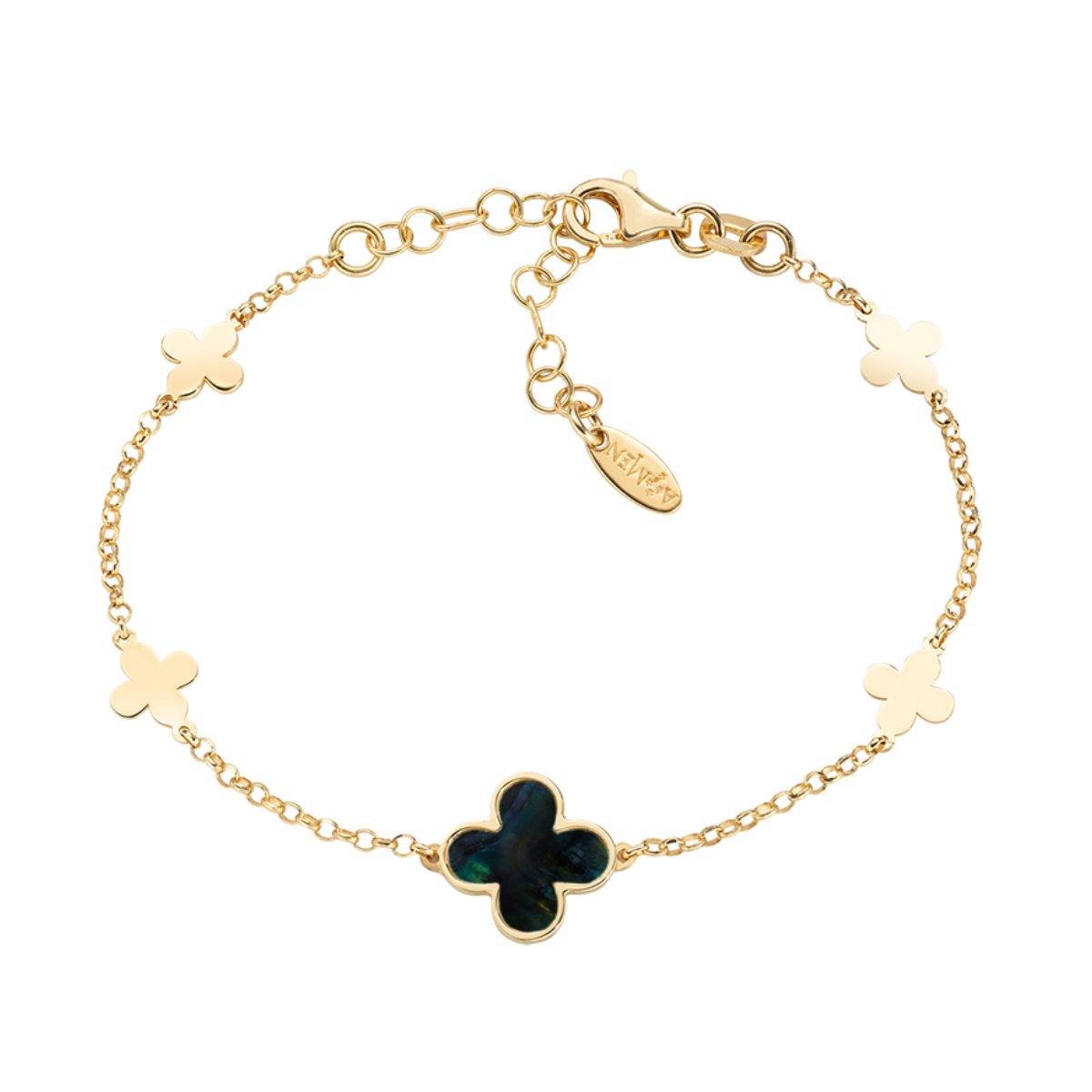 Sterling silver bracelet with black mother of pearl – Gold – length 16 + 3 cm – charm 1 cm
