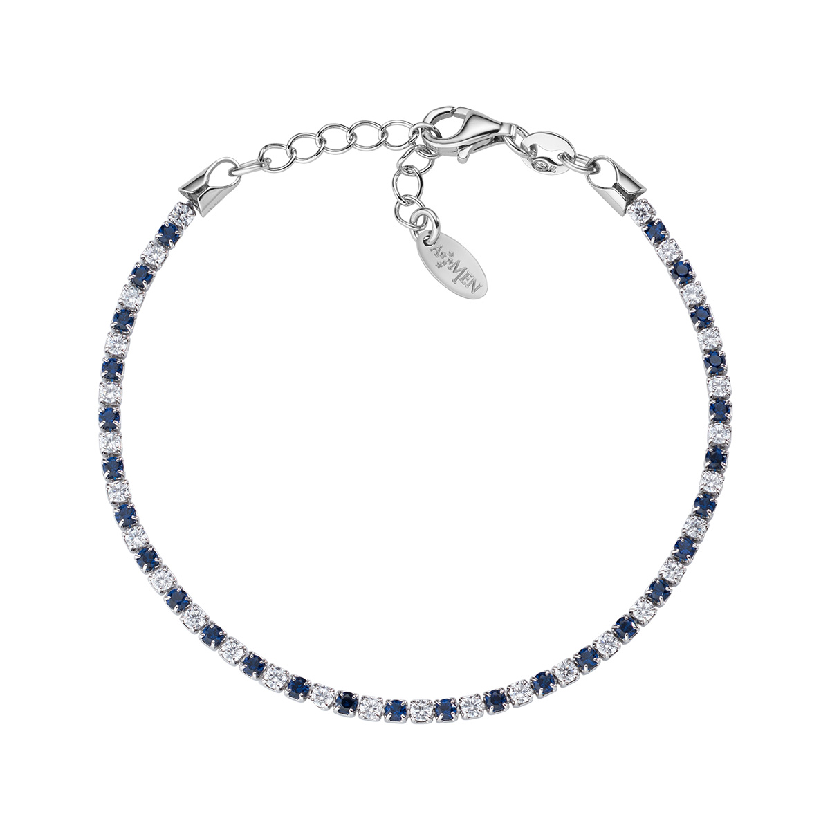 Sterling silver bracelet with white and blue zirconia – Rhodium – length 16 + 3 cm – Ø 2 mm zirconia