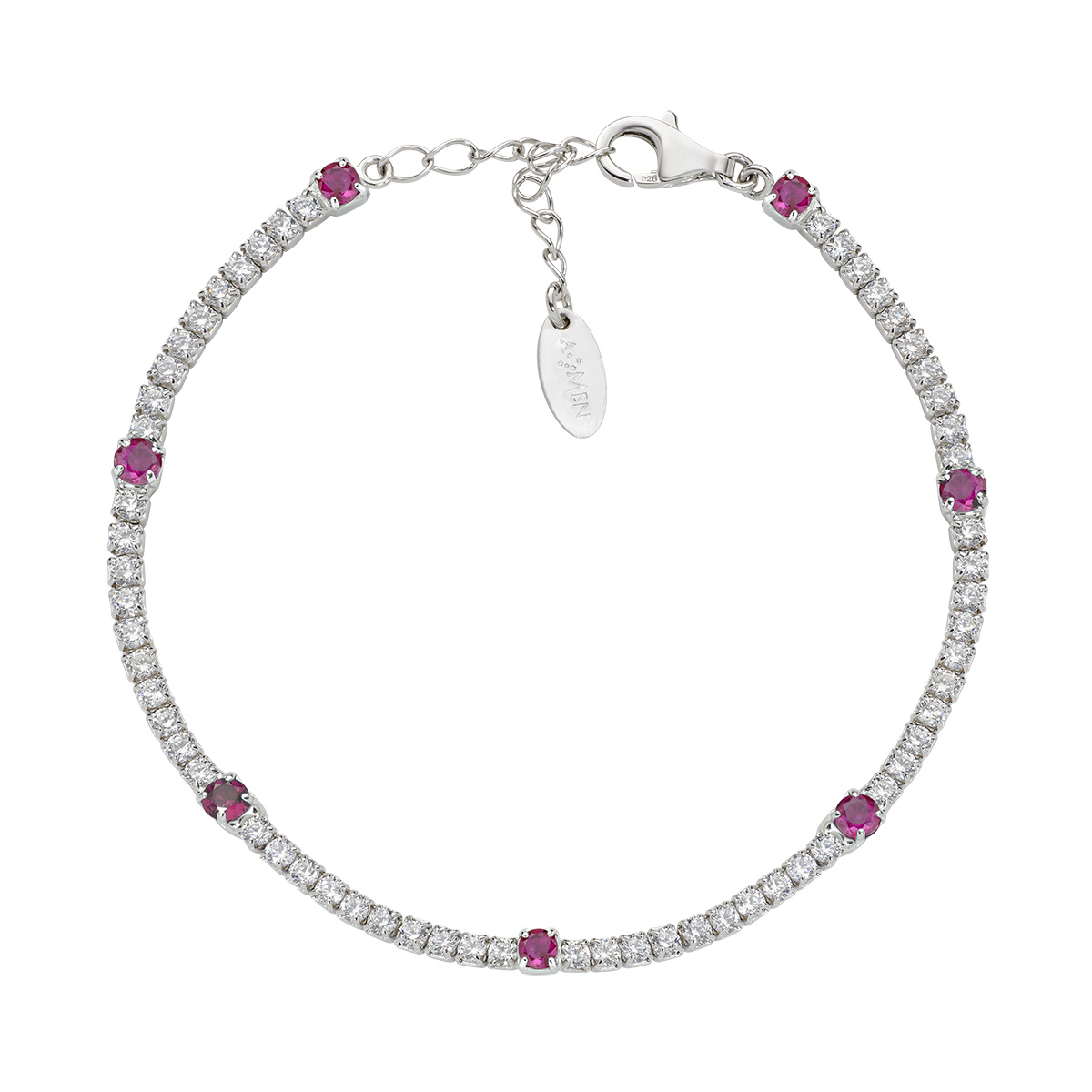 Sterling silver bracelet with white and red zirconia – Rhodium – Length 16 + 3 cm – zirconia Ø 2 mm
