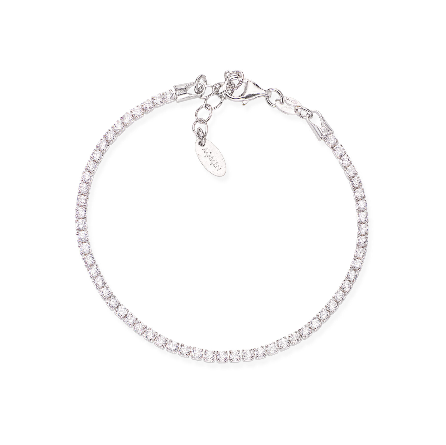 Sterling silver bracelet with white zirconia – Rhodium – length 16 + 3 cm – Ø 2 mm zirconia