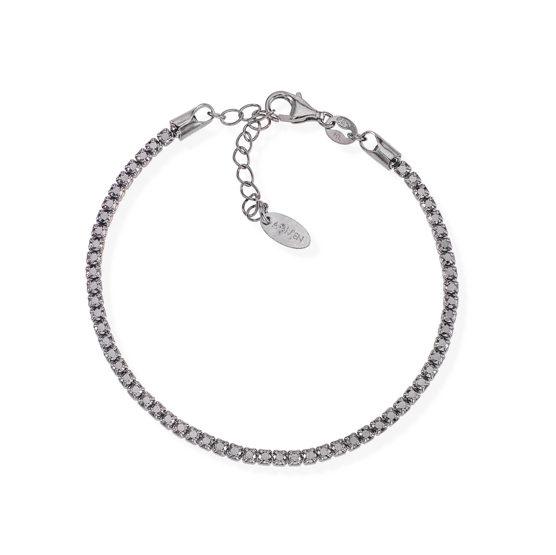 Sterling silver bracelet with black zirconia – Ruthenium – length 16 + 3 cm – Ø 2 mm zirconia