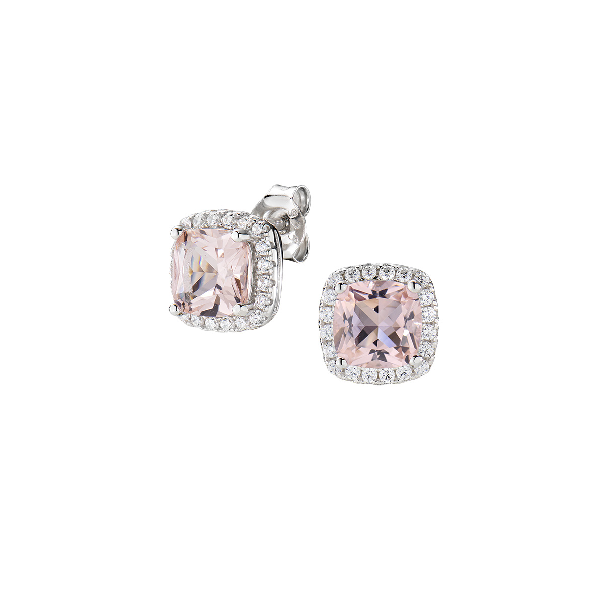Sterling silver earrings with morganite and white zirconia – Rhodium – height 8 mm – Ø 6 mm morganite