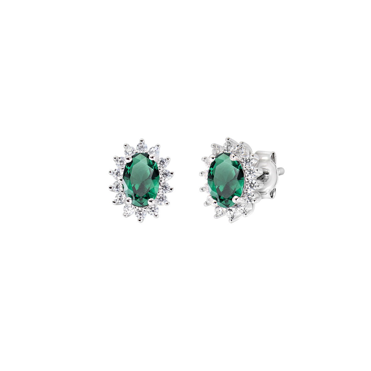 Sterling silver earrings with green and white zirconia – Rhodium – height 1 cm – zircone 4 x 6 mm