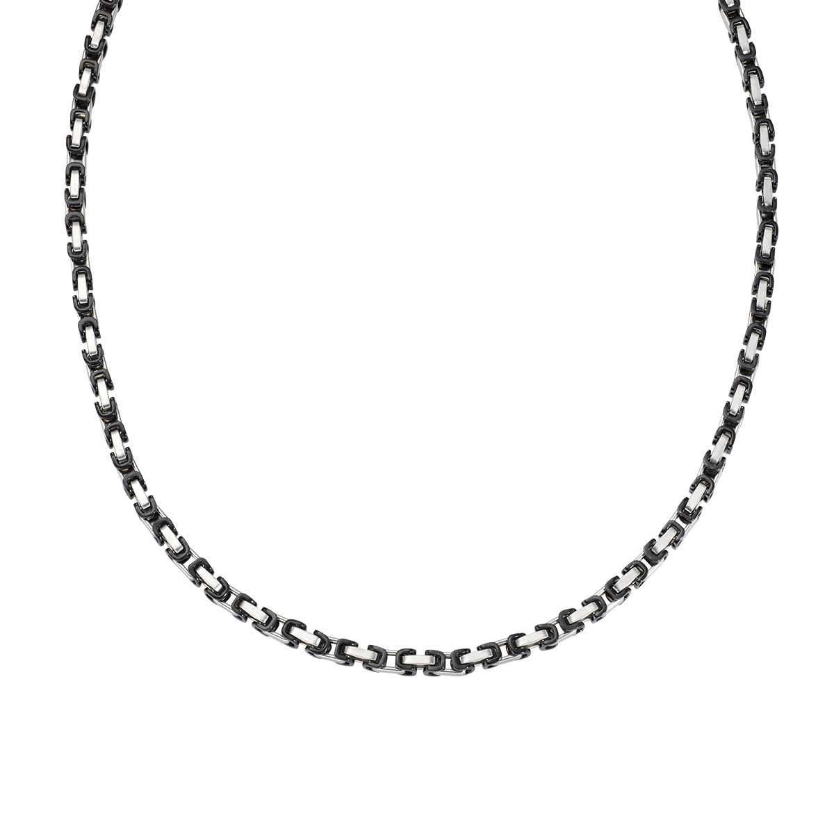 Stainless steel necklace – Brushed steel and Black PVD – Length 50 + 5 cm