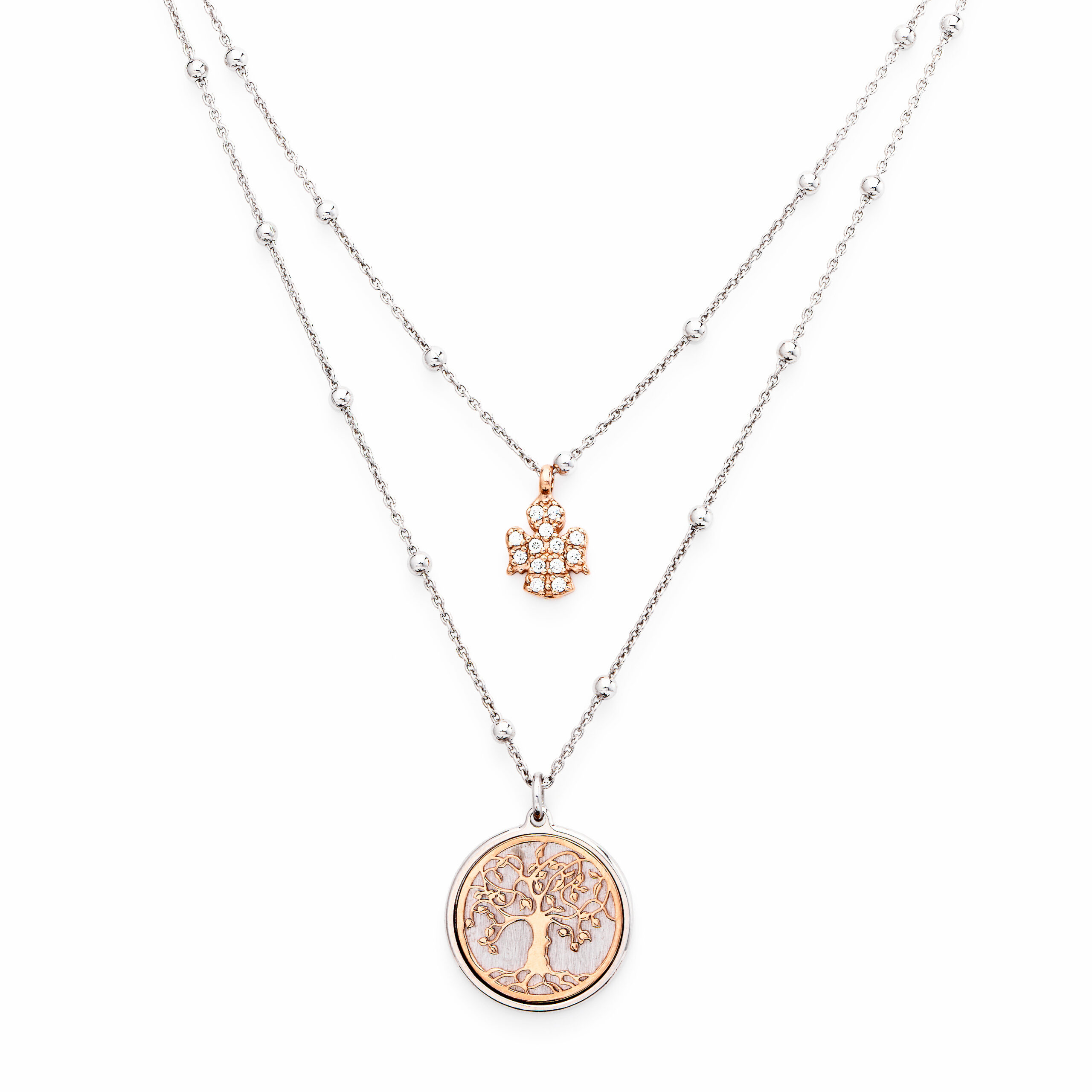 Sterling silver necklace with white zirconia – Rhodium/Rosé – length 44 + 4 cm – charm Ø 1,5 cm