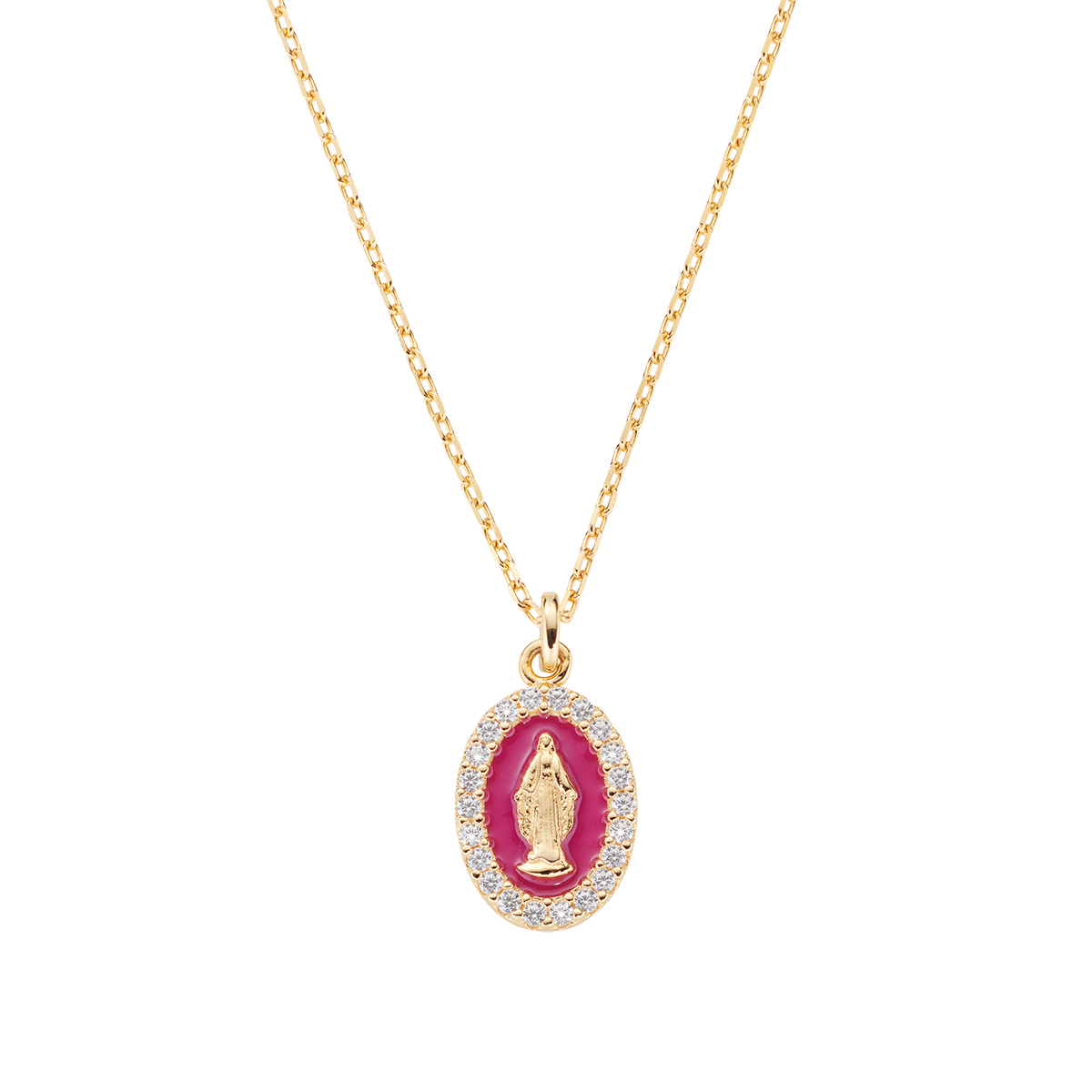 Sterling silver necklace with burgundy enamel and white zirconia – Gold – length 40 + 5 cm – charm 1,5 cm