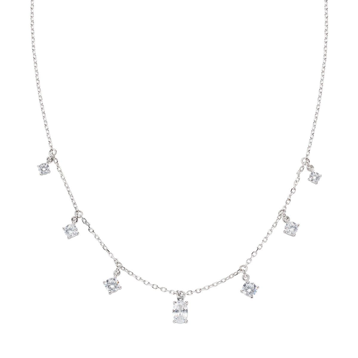 Sterling silver necklace with white zirconia – Rhodium – length 38 + 5 cm – Ø 3/6 mm zirconia
