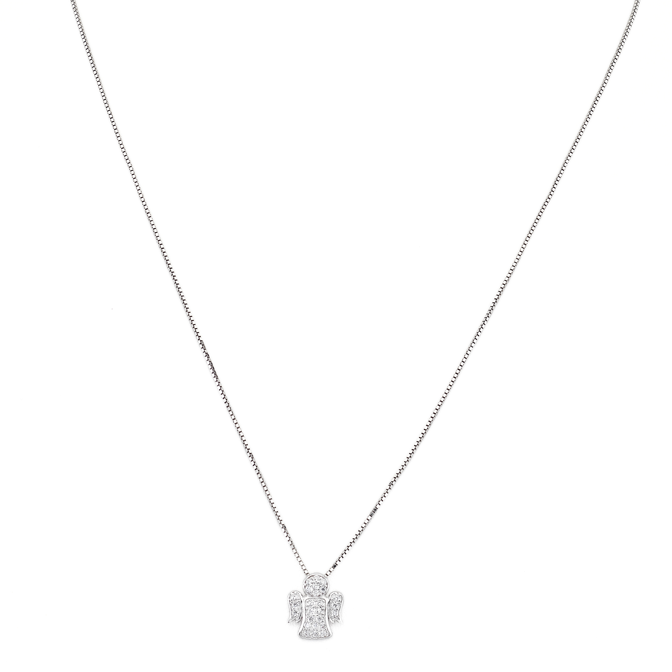Sterling silver necklace with white zirconia – Rhodium – length 40 + 4 cm – charm 1 cm