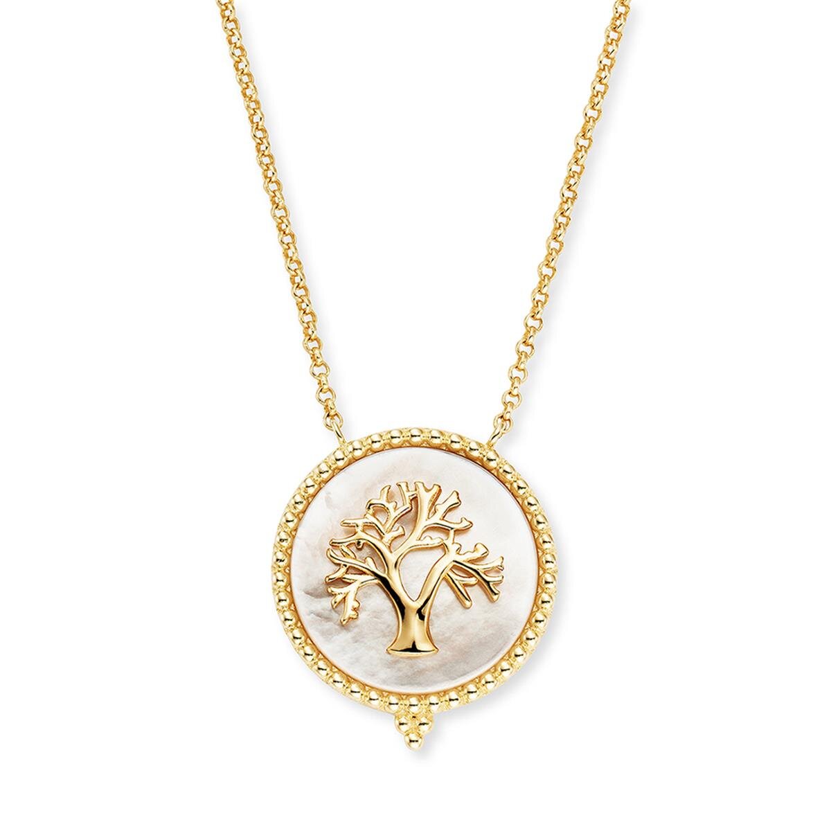 Necklace Tree of Life| 925 Sterling silver gold plated | white mother pearl | 20 mm | length 42 + 4 + 4 cm Mother-of-pearl stands for brilliant flawlessness, innocence, purity and immortality.
