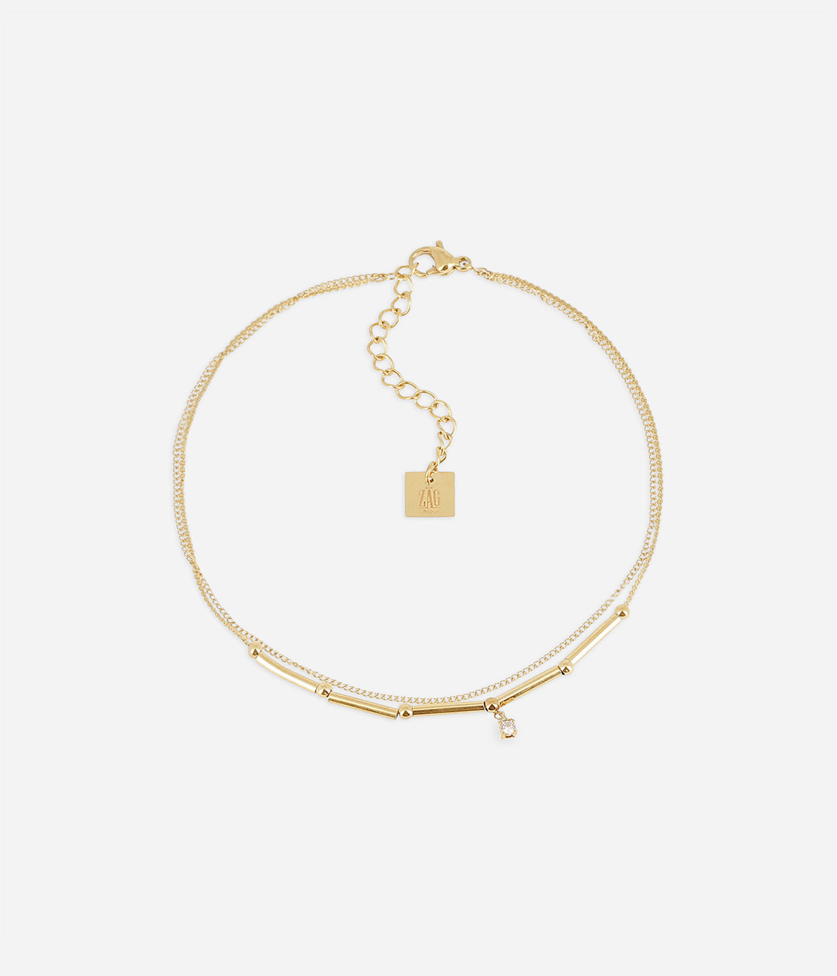 Anklet – Tube – GOLD STEEL – zirconium – 21+4cm