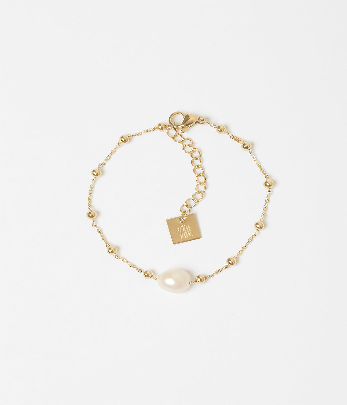 Izia GOLDEN STEEL BRACELET cultured pearl 15+3cm