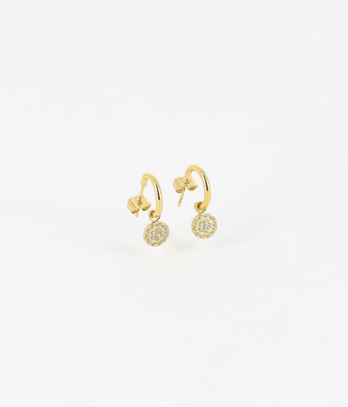 Choupette Earrings, Gold Plated Steel, Set with Zirconia