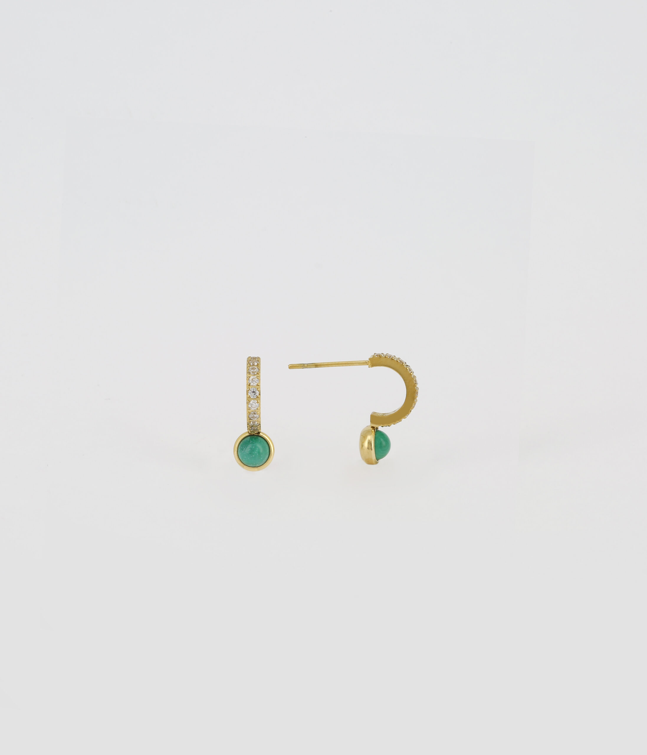 Vanilo EARRING GOLD PLATED STEEL zirconium-malachite setting 10mm