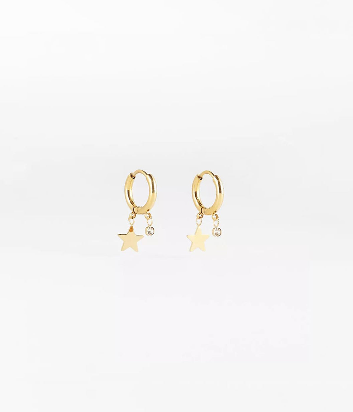 Lucky Star Earrings, Gold Plated Steel, Zirconia, 12mm Diameter