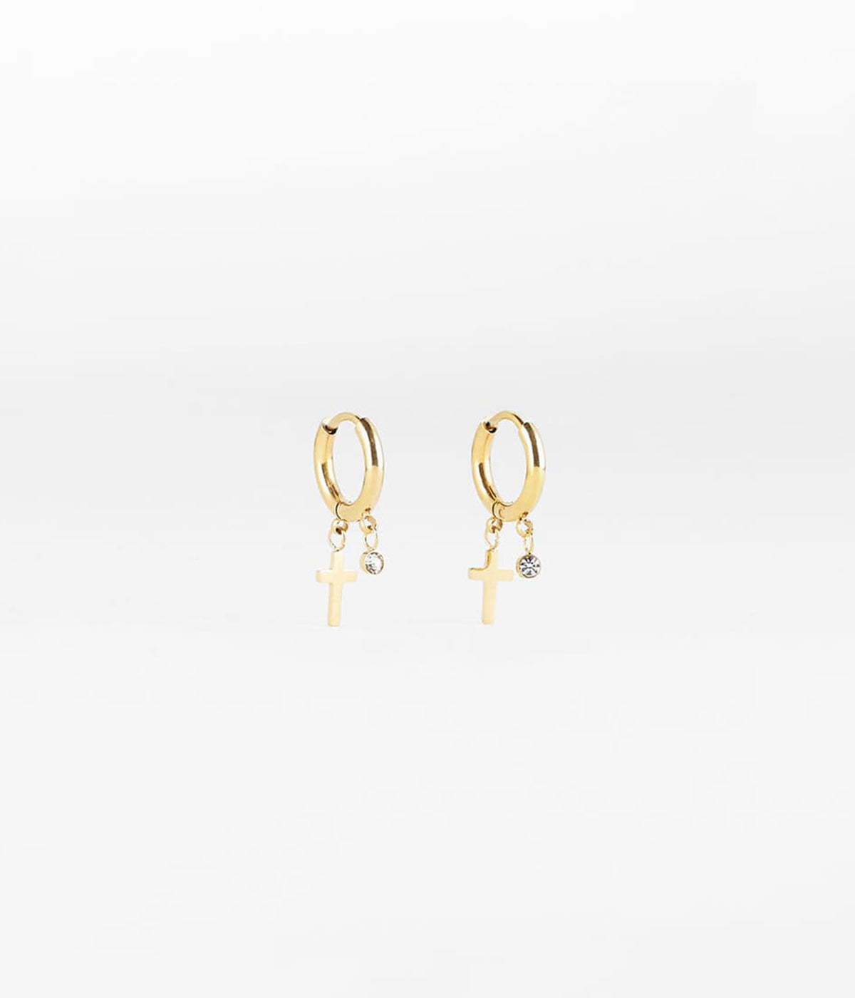 Lucky Spirit Earrings, Gold Plated Steel, Zirconia, 12mm Diameter