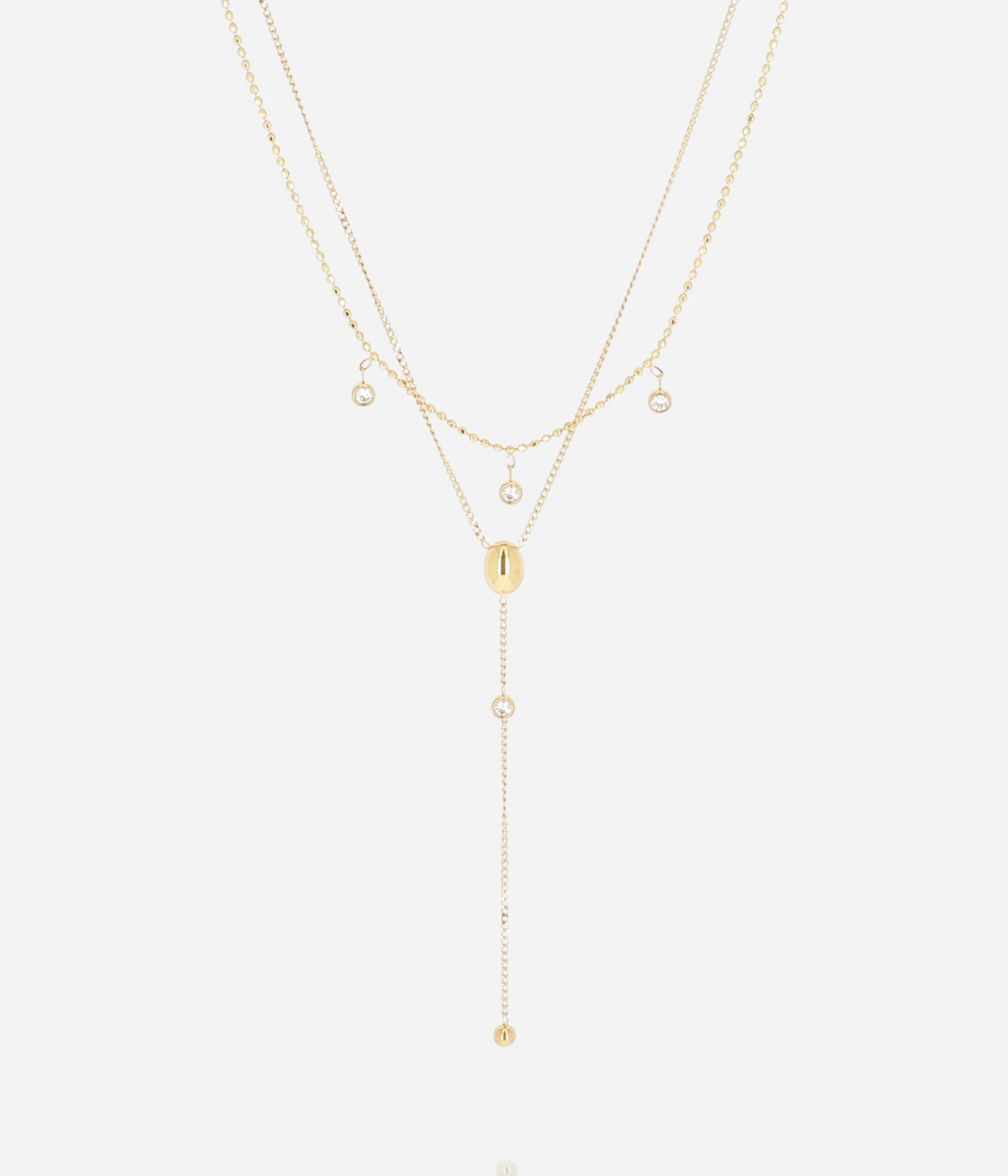 Dilbana necklace, gold-plated steel with set zirconium stones, 38+5cm